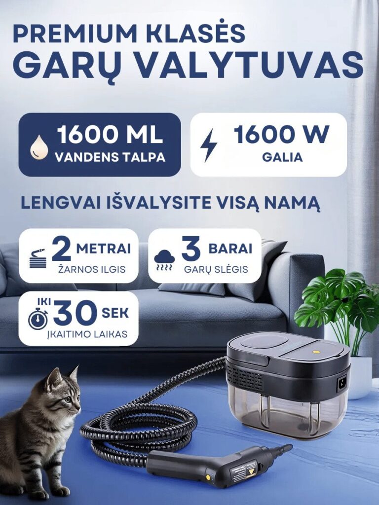 🚀 Pašalina 99,9% bakterijų – garų galia naikina mikrobus ir alergenus, užtikrindama higienišką aplinką.
